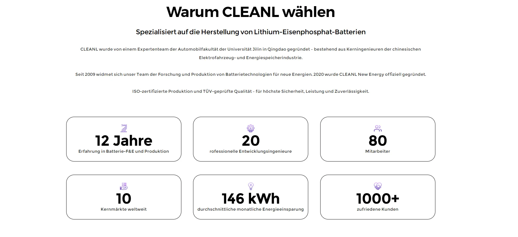 CLEANL Germany GmbH wurde von einem Expertenteam des Automobilforschungsinstituts der Universitat jilin in Qingdao gegrundetDie Kernmitglieder verfugen uber umfasende Erfahrung in der chinesischen Elektrofahrzeug-und Batterieindustrie. seit 2009 konzentrieren wiruns auf die Forschungund produktion von Antriebs- und Energiespeicherbatterien.lm Jahr 2020 wurde ClEANL ofiziell neu strukturiert und geqrundet - basierend auf fast zwei ahrzehntertechnologischer Expertise.