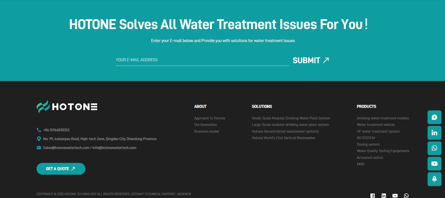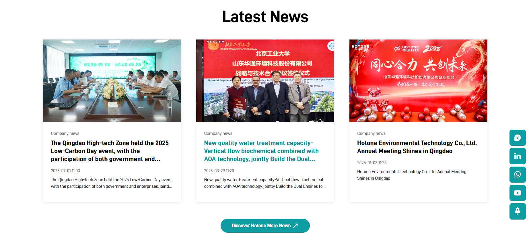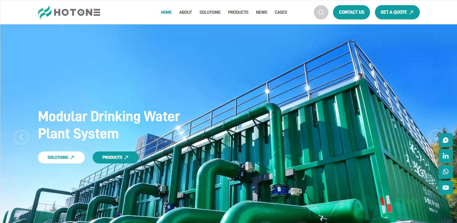 As one of China’s pioneering companies in water treatment engineering and environmental technologies, Hotone provides advanced water treatment solutions and reliable water treatment products. With a strong focus on technology, quality, and service, we support customers across industrial, municipal, and commercial sectors in achieving safe, efficient, and sustainable water management.